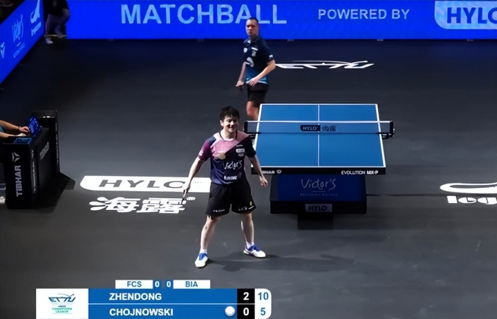 首局,樊振东无论是台内控制还是多拍回合,优势都非常明显,霍多尔斯基没有什么得分的手段,樊振东狂轰11-1,轻松先下一城。第二局,樊振东3-3后连得7分,以11-5再下一城。第三局,樊振东3-0开局,霍多尔斯基追回一分,樊振东5-1拉开比分,霍多尔斯基追到3-5,樊振东一路保持领先以11-5再胜,以总局分3-0横扫霍多尔斯基,为萨尔布吕肯拿下第一分。值得一提的是,拿下胜利之后,樊振东也复刻了C罗的庆祝动作。