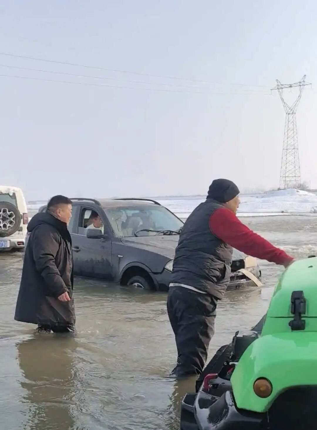 据网友发布的现场视频显示,一辆宝马越野车被困河水中,河边还有积雪,几名男子下到齐膝盖深的河水开始挂绳施救,其中前面一男子大声呼“哇,水真凉!”询问蹚水过来的于东来“大哥冷不冷?”于东来连说“不冷不冷不冷”。视频发布者配文:60岁,零下3摄氏度,说跳就跳进了水里。有许多网友表示,于总精神可嘉,要注意保重身体。